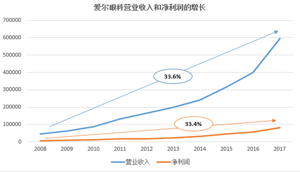 爱尔眼科2017年度息前税后经营利润为7.75亿元,较2016年度的5.53亿元上升40%。其2017年度息前税后经营利润率为13%,几乎和过去两年持平,这说明爱尔眼科是一家发展健康的企业。