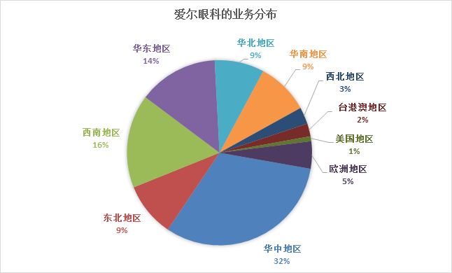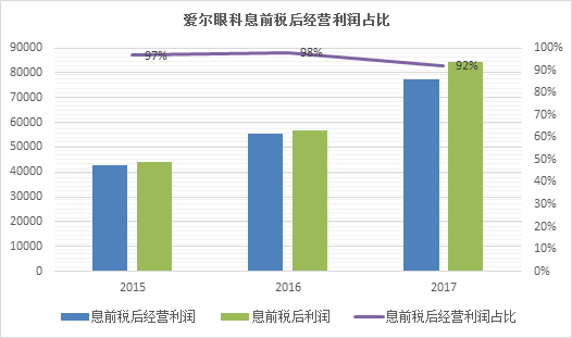 爱尔眼科在过去三年的息前税后利润结构如以下图表所示: