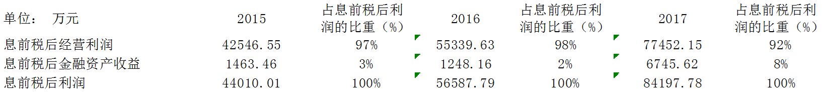 股权价值增加表里的金融资产收益包括公允价值变动净收益、财务费用里的利息收入、短期投资收益、汇兑收益以及其他综合收益。爱尔眼科2017年度息前税后金融资产净收益为6746万元,较2016年的1248万元上升440%。2017年度税后金融资产收益率为1.81%,远远低于其经营资产所产生的收益率以及爱尔眼科的加权平均资本成本(8.44%)。因此建议企业减少金融资产的头寸,将其放入业务扩张中使用,或者股票回购和加大分红力度。