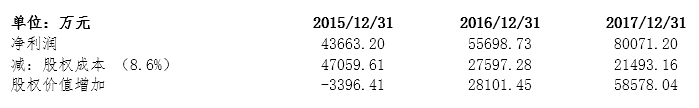 我们从爱尔眼科的股权价值增加表里找到已经计算好的爱尔眼科2017年度息税前经营利润:10.01亿元。而息前税后经营利润反映了企业通过其经营活到获得的真实收益,这个和传统的营业利润还不一样,这是因为传统的营业利润包含投资收益、公允价值变动收益等和企业经营活动无关的一些项目。因此我们使用息前税后经营利润这个概念可以更好地反映企业经营活动的业绩。我们通过以下公式进行计算: