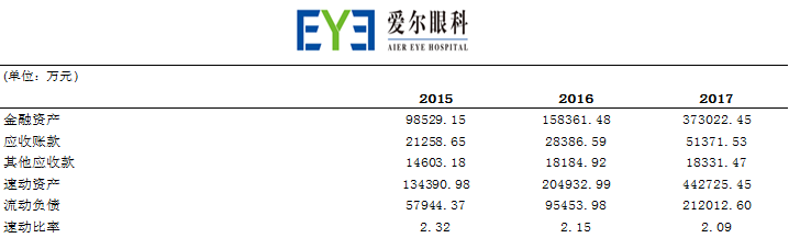 爱尔眼科不存在流动性的风险,特别是爱尔眼科存在大量富余货币资金的情况下。也就是说公司的大量现金放在银行账户吃利息或者低风险理财,然后借款支付利息去并购扩张,应该在流动性安全可控的前提下,加大资金的使用效率。