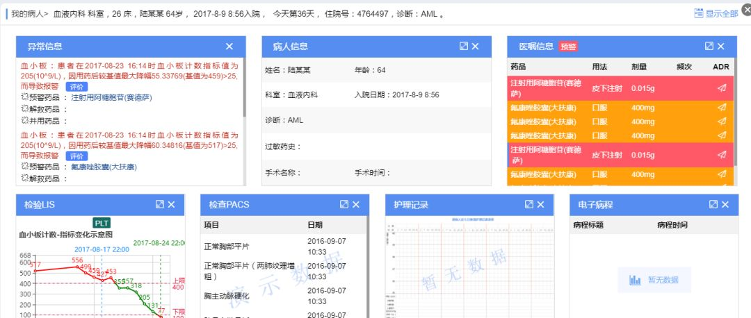 无论查房还是会诊,哨兵软件支持查看特定病人的全部信息,包括医嘱、诊断、检查、检验、病程等;支持对特定病人的风险提示,比如合理用药或不良反应风险。也可以接入第三方合理用药软件,实时审查医嘱/处方。哨兵软件药物警戒系统不良反应监测正确率超过80%。