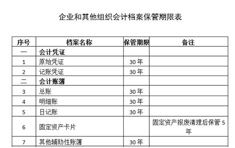 曾经财务资料大约只保存3-25年不等,现在按照最新《会计档案管理办法》,将会计档案定期保管期限由原3年、5年、10年、15年、25年五类调整为10年和30年两类,其中会计凭证及会计账簿等主要会计档案的最低保管期限延长至30年,其他辅助会计资料最低保管期限延长至10年。