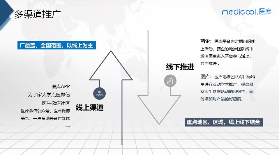 3. 药品进入院内智慧药房,医生是否处方,患者是否用药才是药品的最后一公里。抓住学术营销才能提纲挈领。药企代表进行线下推广的时候,医库以线上营销为主,线上线下配合,共同服务临床。医库作为资深医生社区,线上精准学术营销是医库的看家本领。合规学术营销的形式丰富多样,十种营销模式精准高效切入目标医生和科室。医库还设有虚拟医药代表,一对一面向目标医生、科室、护士、药师进行辅助推广。同时医库多个垂直领域患者社区为后续医患教育、患者管理提供了很好的平台和目标患者。