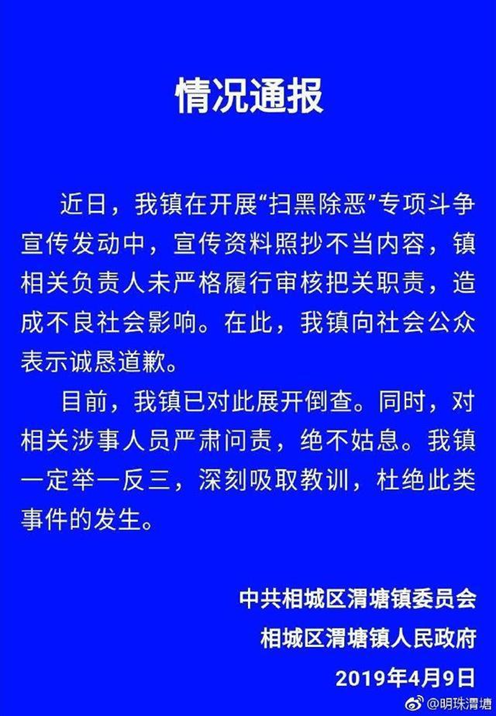 事后,相关部门发布了情况通报,指出是“宣传资料照抄不当内容,没有严格审核把关”才导致的错误。