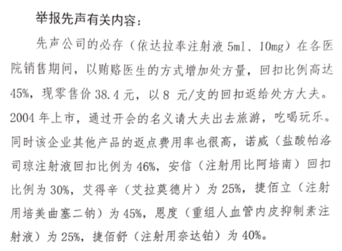 先声药业惨了,因行贿举报信曝光,七个产品被北京卫健委彻查!