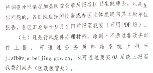7月底“北京市西城区卫健委”发出《关于开展群众投诉举报内容清查工作的通知》(下称《通知》)显示:北京市卫健委要求对群众举报内容开展清查工作。