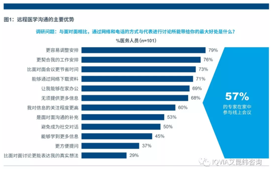 IQVIA艾昆纬为了研究远程医学沟通的价值,面向101名医务人员(30名专科医生、41名全科医生以及30名护士)开展了调研。