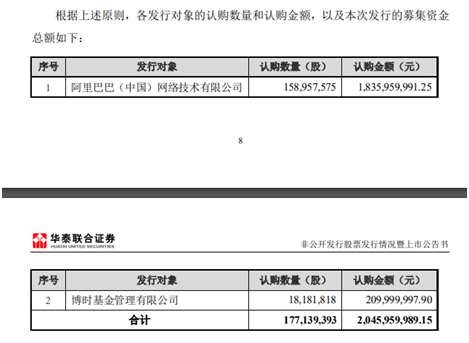 在该次股份转让以及本次非公开发行全部完成后,预计阿里网络将持有上市公司总股本的9.39%,杭州信投将持有上市公司总股本的5.00%,杭州信投为阿里网络的一致行动人(杭州信投股东为阿里巴巴(中国)网络技术有限公司及上海云鑫创业投资有限公司,后者为浙江蚂蚁小微金融服务集团股份有限公司100%控股公司)。