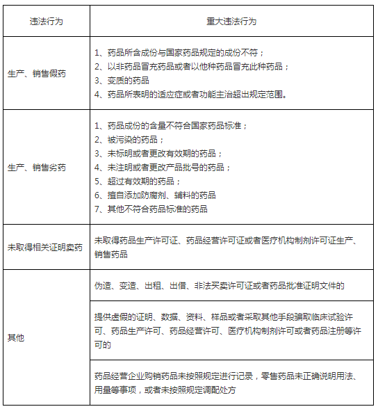 2、那么,药品领域哪些违法行为属于重大违法行为呢?