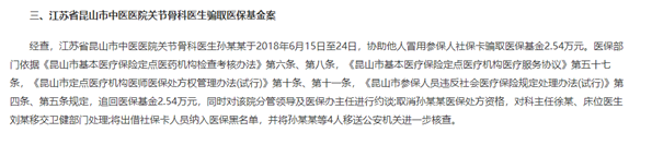 从处罚范围来看,不仅处罚了骗保的医疗机构,在第三批通报中第一次出现对三级公立医院医生骗保的处罚。在江苏省昆山市中医医院在地图中查看关节骨科医生骗取医保基金案的处罚中,追回医保基金2.54万元,同时对该院分管领导及医保办主任进行约谈;取消孙某某医保处方资格,对科主任徐某、床位医生刘某移交卫健部门处理;将出借社保卡人员纳入医保黑名单,并将孙某某等4人移送公安机关进一步核查。