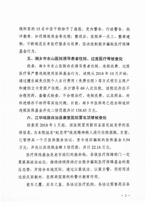 从被国家医保局通报的医疗机构来看,涉事的医院不仅有民营医院,还有公立医院;不仅有基层卫生所、卫生院,还有城市三级医院。