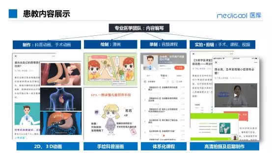 通过制作体系化音频、视频、动画等可视化医学科普内容在患者社区进行患者教育,提升患者数量以及社区活跃度。患者社区的成长也会反过来促进患者依从性管理和处方外流业务的开展。