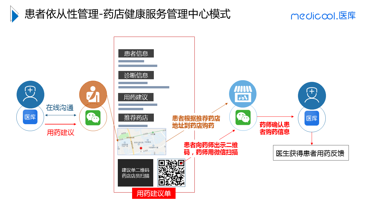 医库通过搭建技术平台载体,构建微信端患者依从性管理平台。