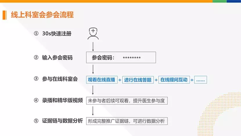 根据我们数年实战总结下来的经验,今天就和大家分享一下新肺疫情下药企数字营销最真实的3大需求。其实近两年来,药企举办各种线下大型会议的频次和标准都在开始下降,但科室会、小型学术会议等却随着学术营销的需求越来越多,因为这种会议成本低,举办方便,同时又能特别精准地覆盖目标医生。在目前线下科室会无法举办的情况下,整合线上会议将是药企的一大数字营销方向,主要的需求包括医生用手机在线观看会议直播、线上互动、答题,并参与会后的调研问卷等。