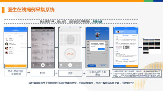 1. 药企使用医库结构化的病例采集工具作为载体,医生只要在医库APP上一键将病例拍照上传,后续就会有医库编辑后台整理,形成完整的结构化病例。