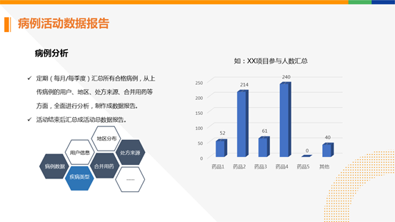 6. 通过便捷方便的移动端病例征集体系,再配合线下代表对医生的持续沟通,就可以帮助药企快速有效收集很多的临床病例。医库统计汇总的病例数据,能够帮助药企分析临床数据、市场数据以及各区域的推广情况,协助中央市场部做出正确决策。