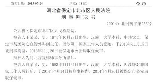 2013年11月,网上曝出“河北保定第一医院大夫收回扣,谈笑数钱”的视频。