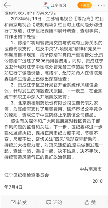 既然是辅助用药,为何保持较高市场份额?这和医药代表“回扣式”推销密不可分。前述判决就是一个例子,其实每月六千多元这只是一个医生的回扣,通常每个代表会至少稳定数十个左右的医生客户,如果只能覆盖几个医生,那他可以去死了。而即便只有十个医生客户,每月的回扣也是几万块,超过这个代表的收入好几倍,因此即使他每月喝西北风全部拿自己的钱给企业做贡献也不够啊!所以这笔钱只有可能是公司行为,而绝不可能是个人行为。制药公司医药代表以学术推广的名义给医生回扣以获得不正当商业利益,药企通过财务造假、编造数据从其他地方将现金“洗”出来,再用学术推广和销售费用入账掩盖回扣痕迹。2014年5月8日,泰德制药的招股说明书曾出现在证监会网站上。不过,泰德制药的IPO进程,最终在“医药营销涉嫌商业贿赂”,“财务数据涉嫌造假”、“收入数据存重大出入”等质疑中流产。所以其实A股是最保护投资者利益的市场之一,最后其无奈只能转向港股反向并购上市了。2018年,南京市江宁区中医院麻醉科主任陈绪军带领全科医务人员在一家高档酒店接受泰德制药宴请一事被曝光。随后,南京市江宁区纪委监察局发布《关于对媒体报道陈绪军相关问题调查情况的回复意见》显示,给予陈绪军党内严重警告处分,责令陈绪军退还了5896元用餐费用。对泰德制药方面,责成江宁区中医院终止采购该公司药品。而事实上,该代表为科室支付的各种钱款远超所谓宴请的费用,因为这是媒体曝光,纪委也不是执法机关,最终高高举起,轻轻落下。其实辅助用药的“回扣式”营销随处可见,不仅造成药品过度使用,而且加大患者的医疗费用负担,和医保资金的压力。因此,价格高、用量大、又非治疗型的辅助性产品,在各省医保资金日益紧张的情况,必将受到严格监控。在这一形势下,泰德制药的前列地尔注射液等一众辅助用药的降价压力巨大。参照美国对同类企业的判例,会直接罚到他们怀疑人生,不但破产,法人及高管还会坐牢!(《在美国采用回扣营销,诈骗医保的药企会有什么结局?》)其定性为药企与医生合谋,为利益恶意诱导处方,属于对医保的诈骗!换句话说,之所以国内医药营销领域回扣这么泛滥,这么严重,那是因为国内判的太轻,没有严刑峻法,也动不动就免于刑事处罚,一旦倒霉被抓到,企业大不了给代表一些安家费封口费,后面该怎么办还怎么办!因此很多药企往往借学术推广名义做很多营销活动,背后暗含过度招待或者变相回扣,这实际是一种伪学术推广!比如步长制药按照上交所问询,每年开学术会议及各种会议超过十万场,代表不是去开会就是去开会的路上,去年超过八十亿的营销费用,主力就是这个,那么今年估计整个上半年的所有会议连科室会都停了,不可能再拿会议做营销费用列支了,不知道他们会以何种方式去做营销成本,还是真的可以销售费用降低一半呢?后面看中报披露即可,考验他们的智慧与监管层智商的时候到了!合规的学术推广需要条件,首先是,产品具有较高的学术价值,其次推广人员要具备学术传递能力,运用合规的方式与合规的平台。很多企业的产品治疗价值不高,不给回扣根本卖不掉,再怎么摆造型请XX审计来做合规,内控与流程监管,整天标榜自己学术营销都没有用,因为一个产品的营销模式从他生下来那天就注定了!