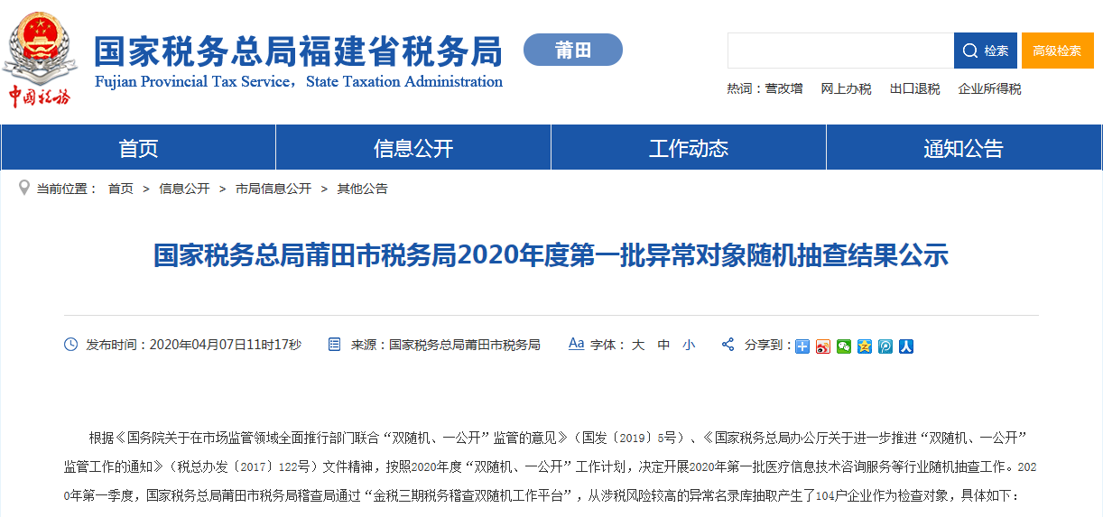 两票制催生了大批医药CSO公司,在两票制执行前期,大量冠以“咨询管理服务”、“医药科技咨询”、“信息科技”等头衔的第三方服务公司出现了。有媒体统计数据显示,两票制全面落地后的当年,全国就新增CSO公司49413家。随着“两票制”政策的不断收紧,医药CSO未来的风暴将越刮越猛,大量不合规的机构将被踢出市场,伪CSO逐步退出历史舞台。虽对外宣称业务真实合规,证据链严格,但内部各种名义大额发票频繁入账,审计署对此类企业开票行为定性为过票洗钱,业界称为CSO,实际上是伪CSO,在金税三期上线以来,一直是被重点打击的对象!4月13日,马鞍山税务局发布《重大税收违法案件信息公告2020年3月》,共列出51家“重大税务违法”企业的名称,除少数几个商贸、建材类型的公司外,其余几乎都是医药服务类企业,即我们说的CSO。(文末附:51家重大税务违法企业)从案件性质来看,几乎都是虚开增值税普通、专用发票或者其他发票,虚开金额最高达千万元。依相关法律法规的有关规定,涉事企业均因涉嫌虚开发票,依法移送司法机关。马鞍山税务局发布的上述公告仅仅是“重大税收违法案件”,一些不列为“重大”的、或是不处罚但是口头“劝诫”关闭的CSO可能更多。4月7日,国家税务总局莆田市税务局发文表示,决定开展2020年第一批医疗信息技术咨询服务等行业随机抽查工作。2020年第一季度,国家税务总局莆田市税务局稽查局通过“金税三期税务稽查双随机工作平台”,从涉税风险较高的异常名录库抽取产生了104户企业作为检查对象。从公布的名单来看,属于医药行业的有54家,占比过半。