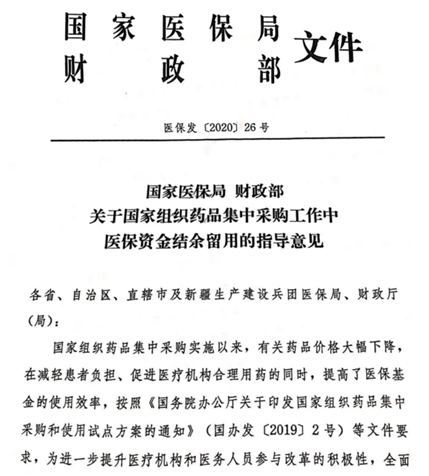 近日,国家医保局、财政部《关于国家组织药品集中采购工作中医保结余资金留用的指导意见》(医保发【2020】26号发布,医院执行带量采购的补偿方案确定了。这份意见将对第三批国家集采产生非常大的影响,不中选几乎等于灭亡。