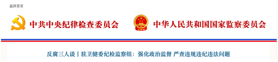 近日,中央纪委、国家监委发布《反腐三人谈丨驻卫健委纪检监察组:强化政治监督 严查违规违纪违法问题》的访谈视频和文章。