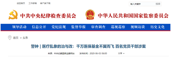 官方公布医疗领域监管重点:一是腐败问题,二是骗保问题。中央纪委国家监委驻国家卫生健康委纪检监察组副组长杨威表示:今年最重要的工作之一是,切实做好医疗保障基金监管情况监督。要坚决查处医疗机构内外勾结欺诈骗保行为,建立和强化长效监管机制。2019年9月起,国家医保局结合打击欺诈骗保工作总体形势,开展了较大规模的医保基金监管飞行检查,发现了一些医疗机构存在严重的违规违纪甚至违法问题,比如,发现某省2家医院存在违规使用医保资金数千万元的问题。我们及时将有关情况向国家卫生健康委党组进行了通报,督促其落实对公立医院监管的主体责任。关于医药反腐问题,杨威表示:要从严从快查处重点案件,针对疫情防控过程中群众反映强烈的突出问题,坚决落实中央领导同志批示要求,在督促有关监督单位核查、整改的同时,敏锐捕捉背后的腐败问题,精准、迅速对相关问题线索进行了初步核实,对有关人员立案审查调查。受监管制度体系不健全、激励约束机制不完善等因素制约,医保基金使用效率不高,“挂床”、超范围经营、小病大治、过度检查用药、套高收费、分解收费、串换收费等欺诈骗保手段层出不穷。一是蓄意诈骗。这种情况通常发生在医疗机构,骗保人以从医保基金中获利为目的,利用伪造病例、挂床住院等手段套取医保基金,性质比较恶劣。二是套取个人医保基金账户。例如,很多定点药店可以用医保卡购买生活用品,每个参保人或多或少都会参与其中,这种现象的出现与定点药店违规经营有关,但也与参保人缺乏维护基金安全的意识以及未能充分理解个人账户资金用途有很大关系。三是过度医疗。这是医疗机构普遍存在的问题,也是医改中一直未能解决的“顽疾”。从医保的角度来看,由于医保基金是公立医疗机构的主要资金来源,因此很多医疗机构会通过分解住院、大处方、过度检查等方式套取医保基金。欺诈骗保行为花样繁多、防不胜防。欺诈骗保行为将被多方面联合监管、严厉打击,严重者将纳入失信联合惩戒对象名单。2018年9月起,国家医保局会同国家卫健委、公安部、国家药监局联合开展打击欺诈骗取医疗保障基金专项行动,并组织开展飞行检查。在今年6月份,中央纪委国家监委网站一篇《医疗乱象的治与改:千万医保基金不翼而飞百名党员干部涉案》,此案当时在业内引起轰动,因医院骗保引发的腐败案,导致当地133名党员干部、公职人员被查处,当事医院重庆学府医院骗保超千万,多名医院管理层被捕。在裁判文书网的二审裁定显示,曾担任重庆学府医院总经理、院长的张某在任职期间,通过虚增用药数量伪造住院病历等方式共计骗取医保资金875万余元。此外,张某还与梁某共谋向时任重庆市南岸区人力资源和社会保障局副局长、区社会保险局局长的文瑛(已判刑)行贿。后张某单独或受梁某指派,代表重庆学府医院多次向文瑛行贿共计47万元。就在前几天,福建省医保局也通报该省十起欺诈骗保典型案例,部分涉事医疗机构被终止医保定点服务,制售假药、盗刷去世亲属社保卡、违规虚开药品、伪造票据骗取医保基金,有关涉事人员被移送司法机关处理。吉林省医疗保障局也曝光了一批欺诈骗保案例,据了解,这是该省2020年查处通报的第一批,通报了12起欺诈骗保典型案例,其中有6家医疗机构被通报,5家为社会办医疗机构。这些被通报的医疗机构分别被处以解除医保服务协议、暂停医保结算、追回医保基金等相关处罚。医保制度建立30多年以来,欺诈骗保现象屡禁不止。在疫情防控逐渐常态化的当下,在医保基金收支压力突显的严峻形势下,严管医保基金重要性再次显现。医保作为支付方,一直肩负控费以及引导医疗资源合理配置的责任,是医保制度可持续运行的生命线。