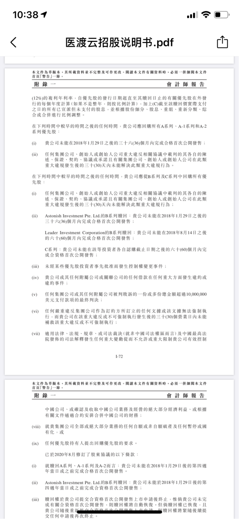 我们看了一下优先股对赌条款,可以要求100%赎回,年利率8%-12%的复利年利率,目前参考图8的财务费用,2020年为约420万,可见并没有完全足额支付利息,只给了一小部分,甚至融资的钱存款或理财还收入了约550万。对赌要求是2018年1月29日后36个月(有一些入得晚的优先股,时间顺延),也就是2021年1月29日前不上市的话,投资方有权使用赎回权并获得复利的利息,也就是对赌失败之后,将变成明股实债!本金另算,仅利息将复合增长至超过5亿!到现在还有不到5个月,也就是说此次如果上市不成,该公司将会产生巨大的经营风险!