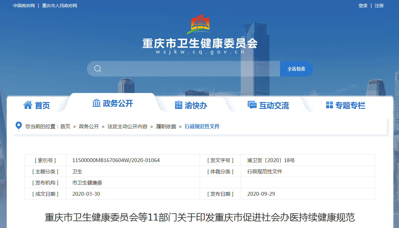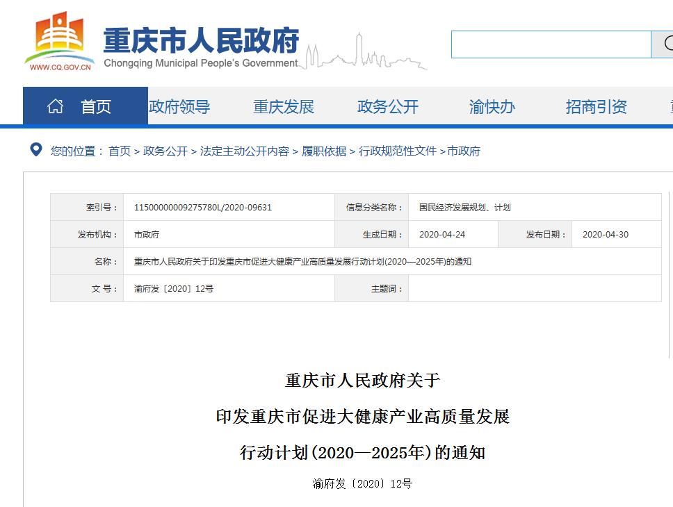 早在今年4月份重庆市就已经发布《促进大健康产业高质量发展行动计划(2020—2025年)》,出台了多项政策,对未来5年重庆社会办医的发展方向做出了非常详细的部署安排。