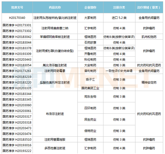 而从CDE发布的第21批参比制剂目录开始,第一次出现注射剂,到目前为止,涉注射剂已超600个。据米内网数据显示,2018年中国公立医疗机构终端化学药和中成药的注射剂合计销售额达6920亿元,其中,化药注射剂占比超过85%,5882亿的销售规模。可见,注射剂再评价是各企业必争的领域。根据米内数据(下图),截至9月底,有42个注射剂品种过评。注射用紫杉醇(白蛋白结合型)、布洛芬注射液、左乙拉西坦注射用浓溶液、注射用帕瑞昔布钠等4款注射剂过评企业数达3家及以上;盐酸右美托咪定注射液、注射用阿扎胞苷、盐酸氨溴索注射液、多索茶碱注射液、盐酸莫西沙星氯化钠注射液、碘帕醇注射液、左氧氟沙星氯化钠注射液等7款注射剂过评企业均有2家,其余注射剂均为独家过评从企业过评情况看,中国生物制药(正大天晴、正大丰海)以6个注射剂品种领跑,恒瑞医药有5个注射剂品种过评,汇宇制药、齐鲁制药、科伦药业、司太立等4家企业均有3个注射剂品种过评。在国家开展的三批集采中,注射剂共有7个品种被纳入,分别为氟比洛芬酯注射液、注射用培美曲塞二钠、盐酸右美托咪定注射液、注射用紫杉醇(白蛋白结合型)、注射用阿扎胞苷、左乙拉西坦注射用浓溶液、盐酸莫西沙星氯化钠注射液。随着化药注射剂一致性评价正式文件的发布,CDE在注射剂一致性评价上的审批政策变得更加严格和规范,我国医保集中带量采购将会在通过一次性评价的产品中选择,化药注射剂行业将迎来整合发展期。注射剂一致性评价对于企业的研发生产经营提出了更严格的要求,制定了更高的标准。化药注射剂品种的一致性评价可能成为未来一段时间仿制药企业竞争的主战场。国内注射剂产品市场将迎来激烈竞争,而随着省级集采的推进和国家级带量采购的落地,也将为注射剂产品市场带来更大的变革。