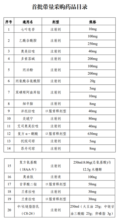 文件显示,株洲市、湘潭市、岳阳市、常德市、邵阳市各级公立医疗机构、医保定点二级以上非公立医疗机构必须参加药品集中带量采购,鼓励零售药店参加药品集中带量采购活动。为充分发挥规模和技术优势,首批带量采购选择了采购金额较大、竞争充分的20个药品。20个药品中包括16个注射剂和4个口服常释剂,注射剂数量占比达到八成。