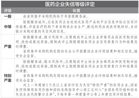 在实行行为级别的评定上,国家医保局将根据失信行为的性质、情节、时效、影响等因素,将医药企业在本地招标采购市场的失信情况评定为一般、中等、严重、特别严重四个等级,每季度动态更新。