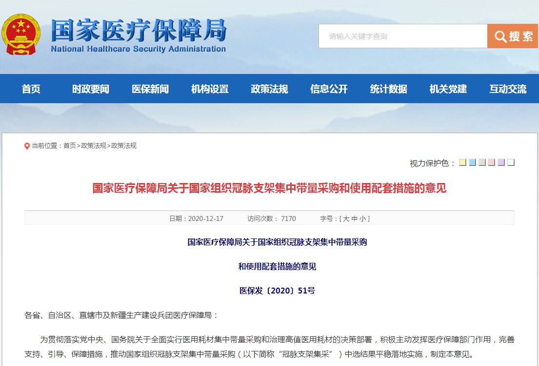 平台挂网方面,要求按中选价格在各省级采购平台挂网。对于中选品种以外的冠脉支架,引导和鼓励相关企业将价格调整到合理水平。配送方面,要求由中选企业自主选择中选产品配送企业。