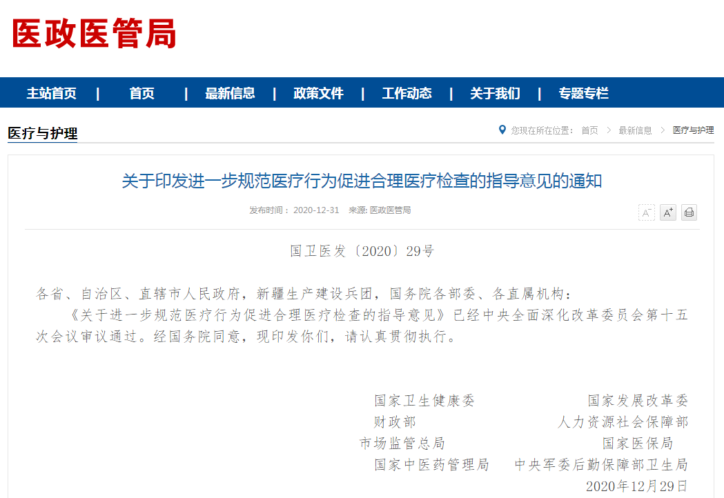 围绕规范医疗行为、促进合理医疗检查方面,国家陆续出台相关文件