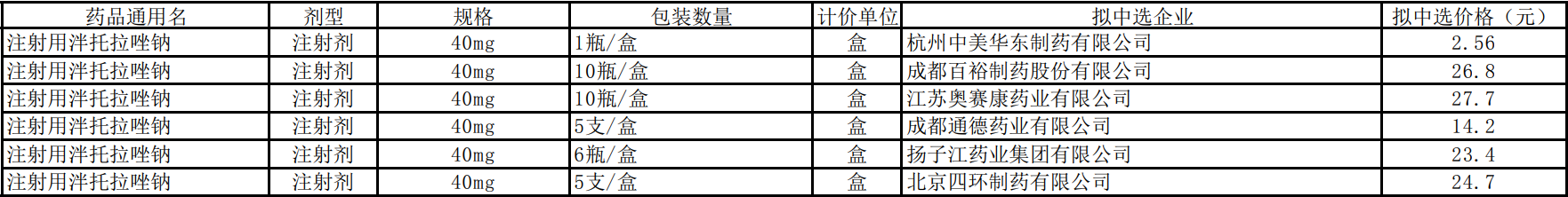 此次国家集采首次纳入注射剂大品种,共涉及8个品种,包括氨溴索注射剂、丙泊酚中长链脂肪乳、布洛芬注射液、多索茶碱注射剂、帕瑞昔布注射剂、泮托拉唑注射剂、硼替佐米注射剂和注射用比伐芦定。注射剂受到市场关注的一大原因,在于其超高的市场销售额。这些均为临床大品种,8个产品2019年样本医院收入占45个品种2019年总样本医院收入的30%以上。根据米内网数据,2019年中国公立医疗机构终端化药注射剂市场规模突破6300亿元,前20大产品的合计销售额超1000亿元。口服制剂或仍可在零售或线上渠道进行销售,而注射剂基本销售终端都在医院,一旦因不过评而暂停挂网或不能参与集采,就意味着失去市场。注射剂大品种纳入国采或将直接对数十家药企的销售收入产生影响。随着更多品种纳入集采,未来注射剂市场洗牌将加速。以“死亡之组”的氨溴索注射剂为例,三个品规最终有10家企业拟中选,相比最高有效申报价格,多家企业实际报价降幅超90%,其中云南龙海天然植物药业降幅达到93.3%。泮托拉唑注射剂是此次集采中采购量最大的注射剂,40mg规格最高有效申报价格为28.5元,而拟中选结果中,6家中标企业的报价最低的是华东制药,仅2.56元,降幅达到91%以上。4ml布洛芬注射液最高有效申报价格为57.6元/支,而杭州民生、四环医药、成都贝特的报价基本都在20元上下,最低价甚至降至15元以内,而降价前的市场价格普遍超过百元。治疗肝癌的抗肿瘤药索拉菲尼有江西山香药业和重庆药友制药两家国内企业拟中选,最高有效申报价格是95元,企业报价分别为22.8元和26.6元,最高降幅达到72%。另外,治疗多发性骨髓瘤的抗癌药硼替佐米注射剂,3.5mg品规价格从3919.2920元,最低降至780元,降幅超过80%,1mg品规价格从1502.12元降至346元,降幅达到76.97%。