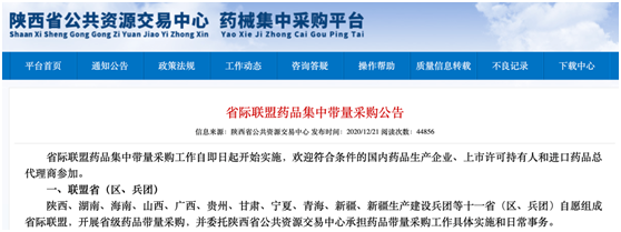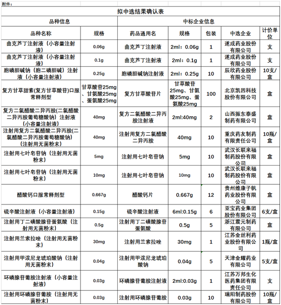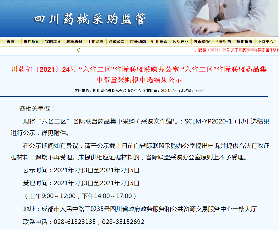 同日2月3日,四川省药械招标采购服务中心发布“六省二区”省际联盟药品集中带量采购的拟中选结果。