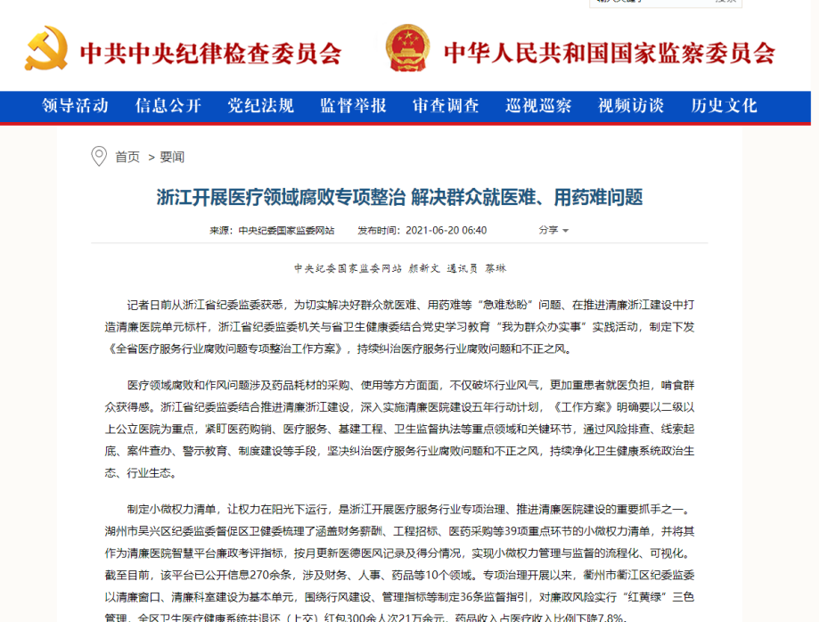 对医药腐败的打击方法,除了频繁的举报信之外,也通过医药大数据监管平台专盯重点关键岗位等方法,强化反腐的力度。