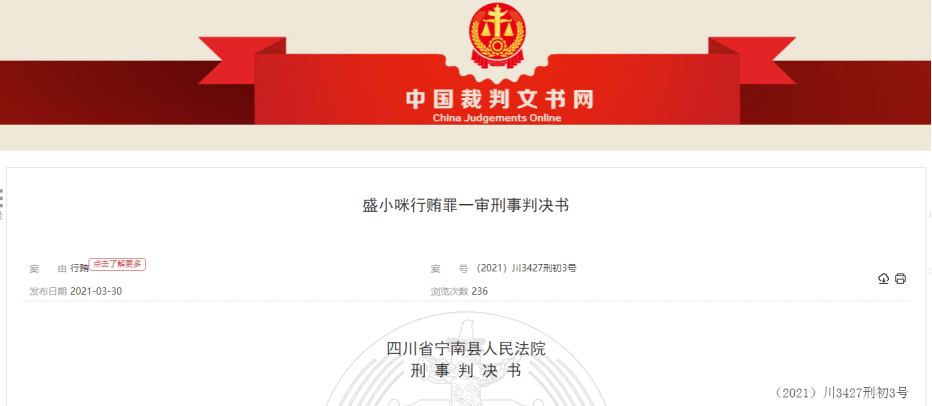 一、2017年下半年,宁南县骑骡沟乡卫生院因业务发展,需要对放射科进行装修,冉启旭把业务给被告人盛小咪做装修结束后,2018年年初的一天,被告人盛小咪从骑骡沟接冉启旭回宁南的途中送给冉启旭好处费20,000元。