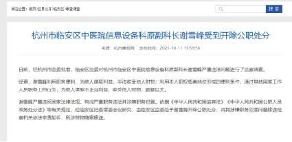 二、临安区中医院信息设备科原副科长非法‘出售’统方,收受医药代表好处费,涉嫌受贿已公开庭审