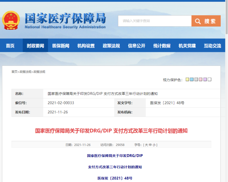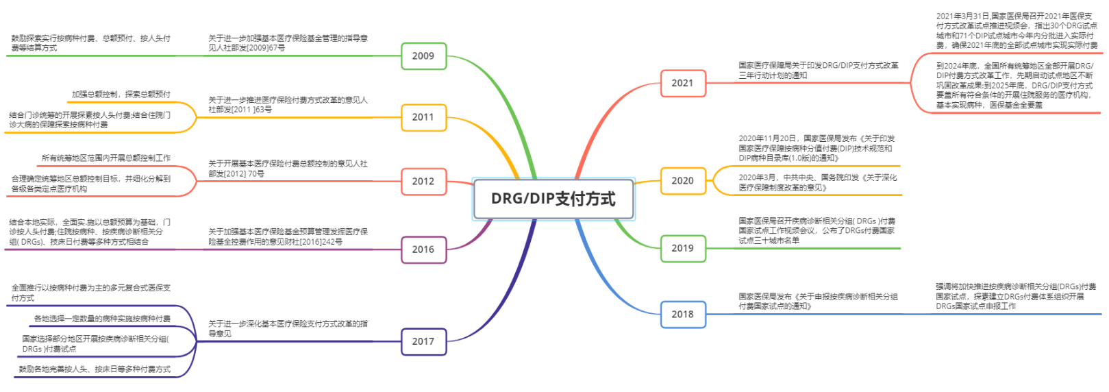 根据国家医保局2021年11月26日印发的《DRG/DIP支付方式改革三年行动计划》显示,加快推进DRG/DIP 付费方式改革。到2024年底,全国所有统筹地区全部开展DRG/DIP支付方式改革工作,到2025年底,DRG/DIP支付方式覆盖所有符合条件的开展住院服务的医疗机构。