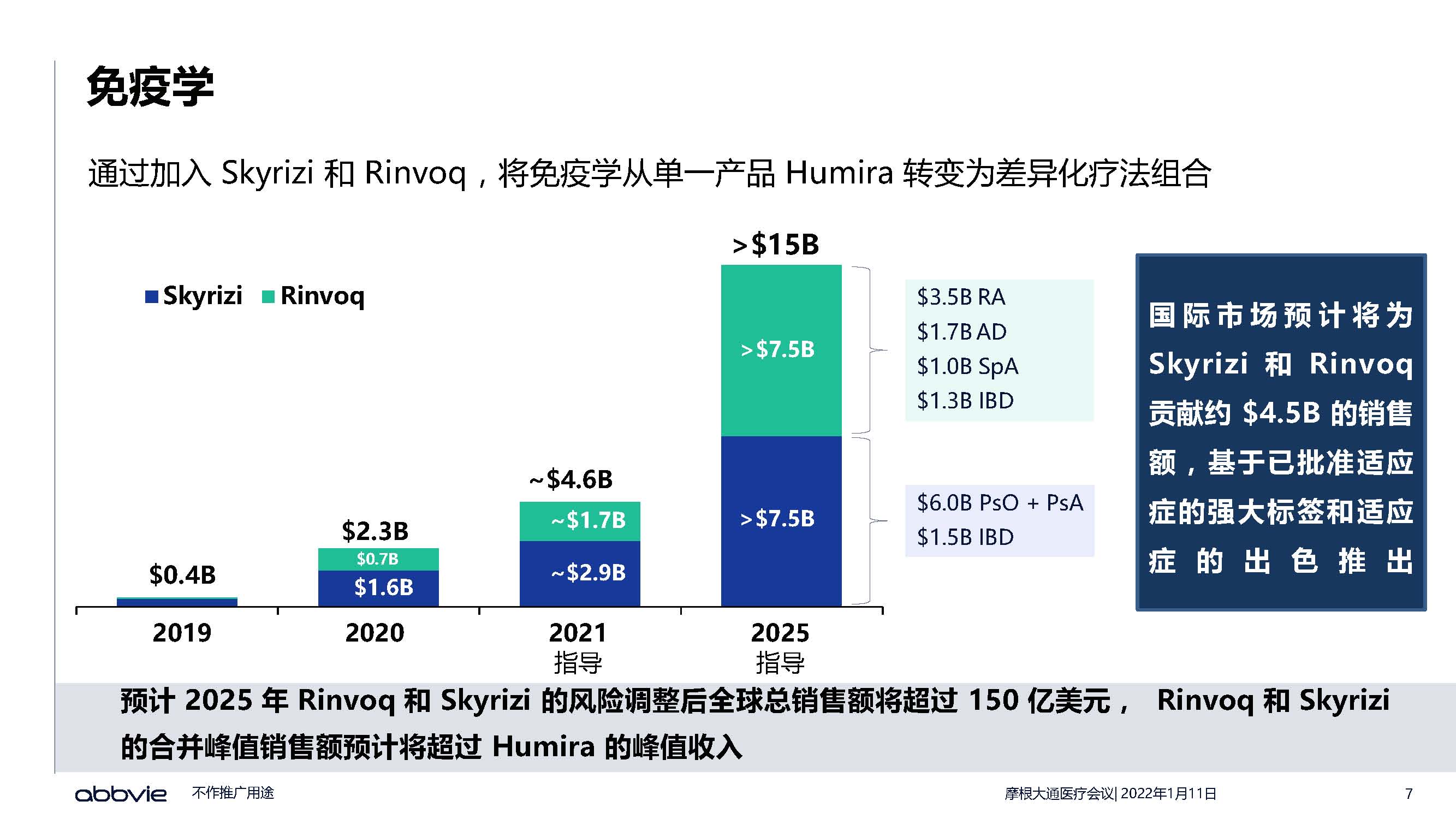 Otezla®:银屑病口服疗法的全球领导者;7% 销量增长。