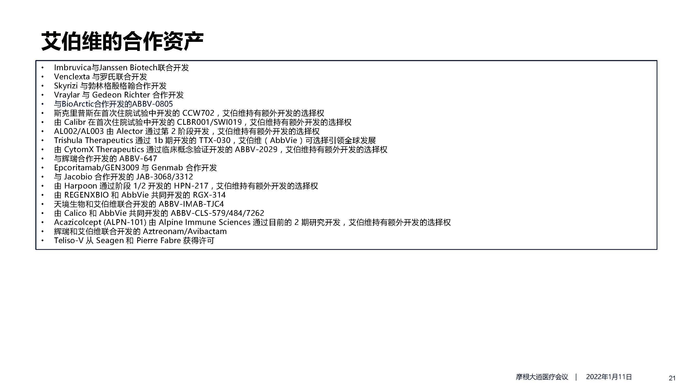 而且作为行业领先,安进有能力实现具有吸引力的长期增长,而且致力于投资外部创新,2021年早的Rodeo、Teneobio、Generate Biomedicines、Arrakis以及后期的Bemarituzumab、AMG 451都——均进入了 Ph3,而且业务发展是安进战略的重要组成部分。