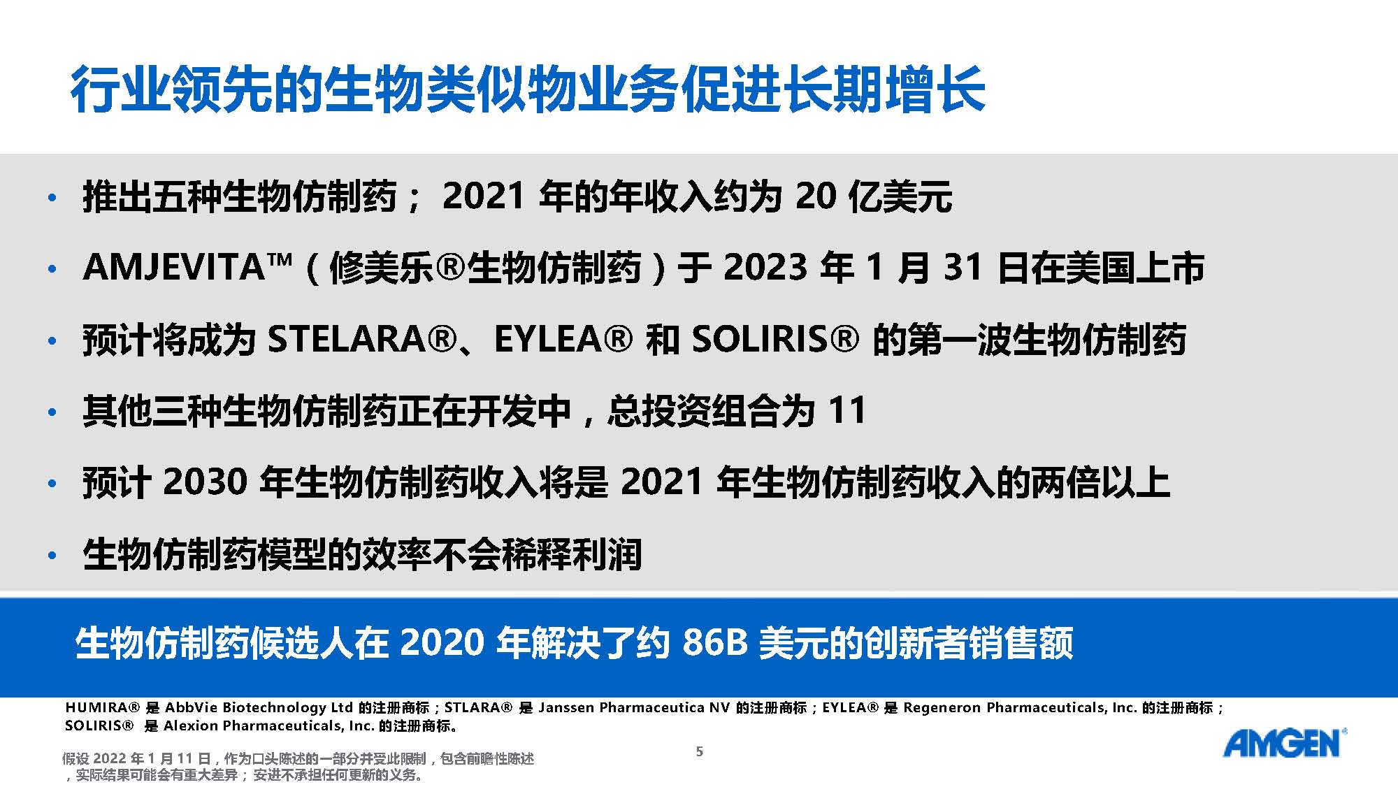 3.生物仿制药:我们的生物仿制药产品组合的潜在扩展从三个资产到六个;