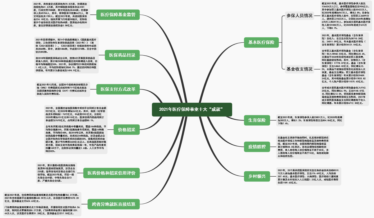 截至2021年12月底,全国30个按疾病诊断相关分组(DRG)付费国家试点城市和71个区域点数法总额预算和按病种分值(DIP)付费试点城市全部进入实际付费阶段。