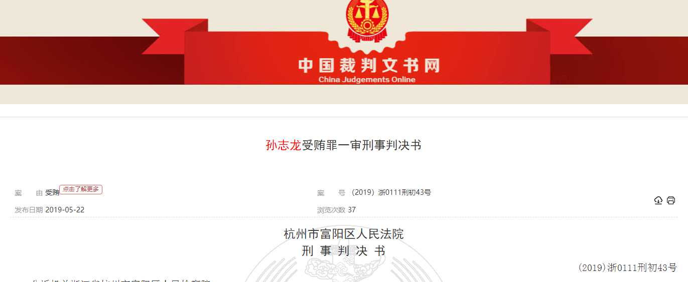 判决书显示,2007年4月至2018年7月期间,被告人孙志龙利用担任杭州市富阳区第二人民医院急诊科(兼综合病区)主任、药事委员会成员、副院长等职务便利,为海南木华公司、医药代表王某1谋取利益,先后多次非法收受海南木华公司、王某1所送的药品回扣,共计人民币16768171.26元。
