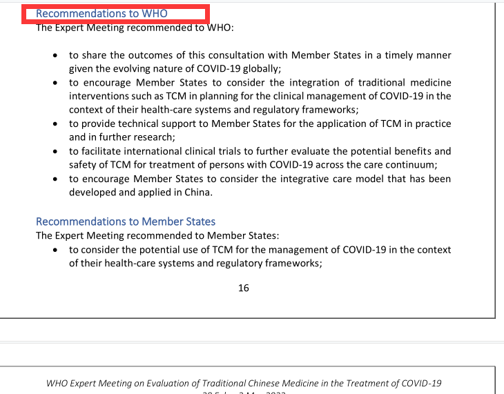 此处被某些媒体歪曲成“世卫组织称中医药能有效治疗新冠,鼓励成员国考虑吸纳中医药”,报告中明确显示的是建议性,既然是建议那就没有确定,这又是从哪里来说的世卫组织称?是在打着世卫组织的幌子夸大其词。