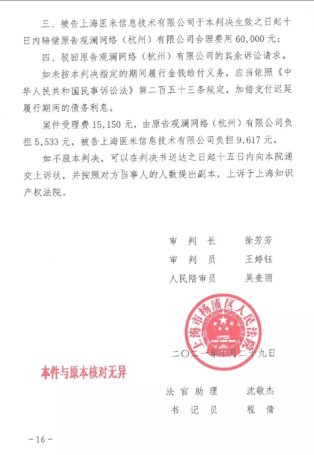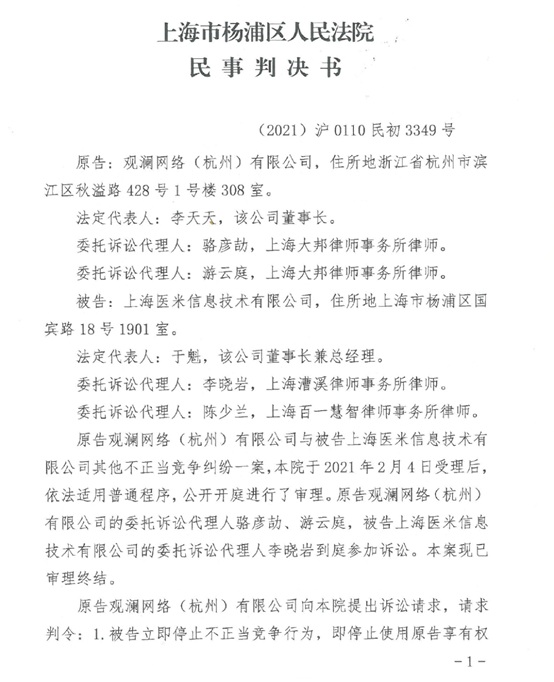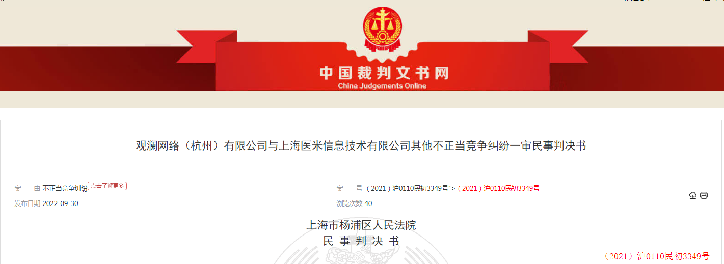 观澜网络(杭州)有限公司与上海医米信息技术有限公司其他不正当竞争纠纷案