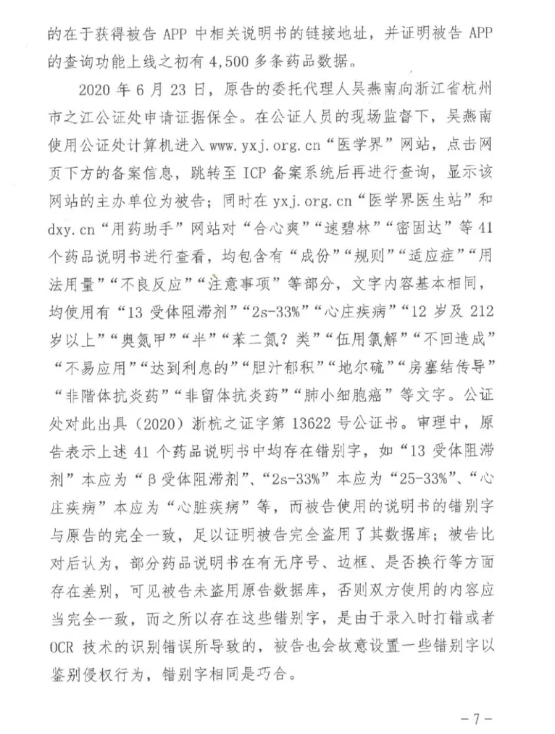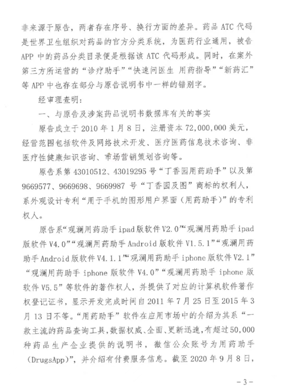 3. 根据现有证据,被告软件中的药品说明书不仅在药品分类、文字内容等方面与原告的对应说明书基本相同,更存在相同的错别字与药品、药方等图片。