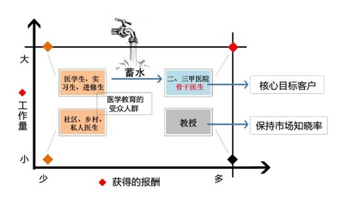 第二类医学生和低年资医生,是医生入口的蓄水池。即使只有20%的医学生最后成为医生,但是其他人大部分也会成为医药研产业链上的从业人员,因此对企业来说非常重要。我们行业里最好的公司丁香园最早就是从学生论坛出发,十多年慢慢积累,厚积薄发,近年来在资本的支持下迅速做大的。我们都是从学生过来的,学生们是一批穷人,但是他们活跃、有热情,要为他们提供好的平台和内容,帮助他们成长,让他们有所收获,但其不是我们商业路线图的着力点。