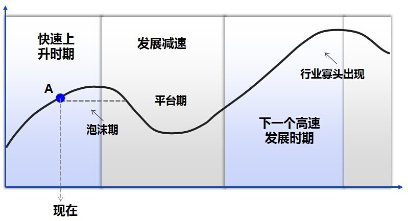 Dr.2认为移动医疗行业即将进入第一次泡沫期。事实上移动医疗四个较大的入口方向,有7~8个细分子行业,虽然每个子行业的生命周期都不相同,但行业整体来说还是大致同步前进的,因此在经过一个快速上升阶段后,我觉得可能将会快速步入行业的第一个小寒冬,如图1所示:我们处在A点,属于快速上升期,估计再过半年到一年将进入一个小寒冬,经过一个平台期后,行业可能会出现“剩者为王”的情况,继续快速增长。而且这个小寒冬阶段很难跳过。这是因为实业和资本市场一样,“多头不死,空头不补”!本身移动医疗行业的复合型人才非常少,如果很多低效率的企业不“吐出”这些人的话,整个行业将很难快速发展,资源很难聚合。